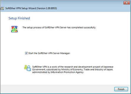 SoftEther VPN Client, SoftEther VPN Server, SoftEther VPN Bridge, and VPN Gate Relay Service will be installed on your computer as system services. System services always run in the background. System services usually do not appear on the computer display. Then your computer system is booted, system services automatically start in the background even before you or other users log in. To check whether SoftEther-related system service is running, check the process list or the background service list of your OS (called as "Services" in Windows, or "Daemons" in UNIX.) You can activate, deactivate, start, or stop system services using the functions of the OS anytime. SoftEther-related GUI tools for managing system services communicate with these system services. After you terminate these management GUI tools, SoftEther-related system services will continue to run in the background. System services consume CPU time, computer power, memory and disk space. Because system services consume power, your electricity charges and amount of thermal of your computer increase as result. In addition, there is a possibility that the mechanical parts of the life of your computer is reduced.